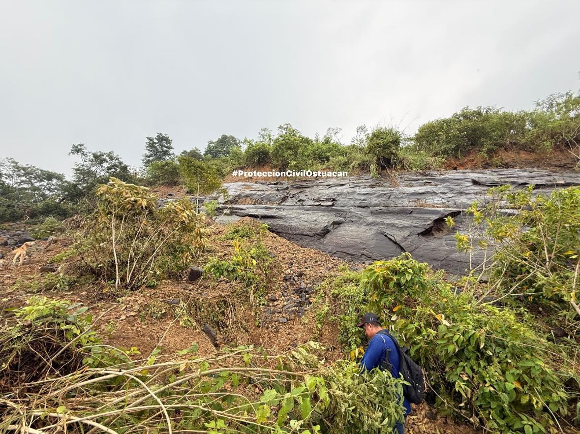 El día de hoy, personal de #ProtecciónCivilOstuacán acudió a la entrada a la Laguna Abajo, donde se detectó que la parte baja de la carretera presenta un deslizamiento de tierra y riesgo de derrumbe.Cuatro elementos de la corporación realizaron la verificación y delimitación del área, con e...